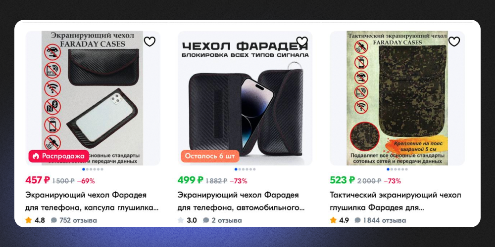 Современные клетки Фарадея бывают разного размера и выглядят как чехлы, сумки или чемоданы. Устройство можно купить на любом маркетплейсе.