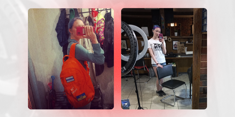 Фото: на свободе Полина Евтушенко носила рюкзак с надписью «Нет войне» и футболку с фразой Fuck Putin / соцсети
