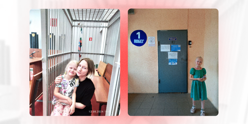 Фото: 1 — Полина Евтушенко с дочкой Алисой в суде; 2 — Алиса в колонии перед краткосрочным свиданием с мамой / группа поддержки Евтушенко
