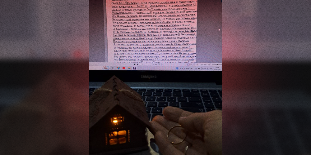 Фото: Ольга держит обручальное кольцо Геннадия. На фоне — скан письма, которое он написал из СИЗО