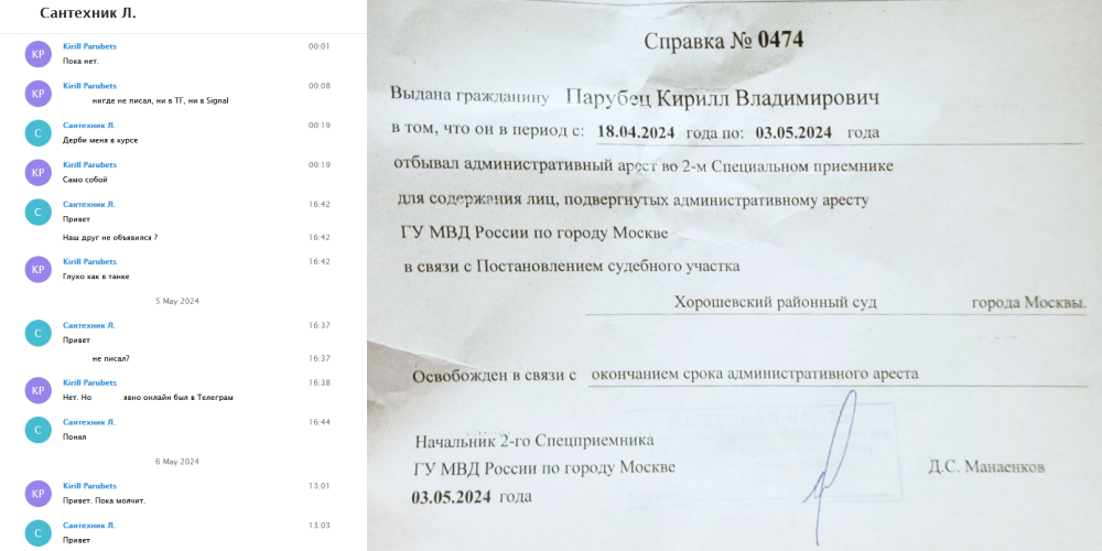 В апреле 2024 года ФСБ задержала системного аналитика Кирилла Парубца. Его обвинили в денежных переводах в Украину и угрожали пожизненным заключением. По словам чекистов, единственным способом избежать наказания было согласие на сотрудничество, а именно — готовность задержанного следить за своим другом, против которого готовилось еще одно дело о «госизмене». Однако Парубцу удалось обмануть спецслужбу и уехать из России, хотя загранпаспорта Кирилла и его жены были изъяты силовиками. «Первый отдел» рассказывает, как Парубцу это удалось. Видеоверсия материала доступна здесь.