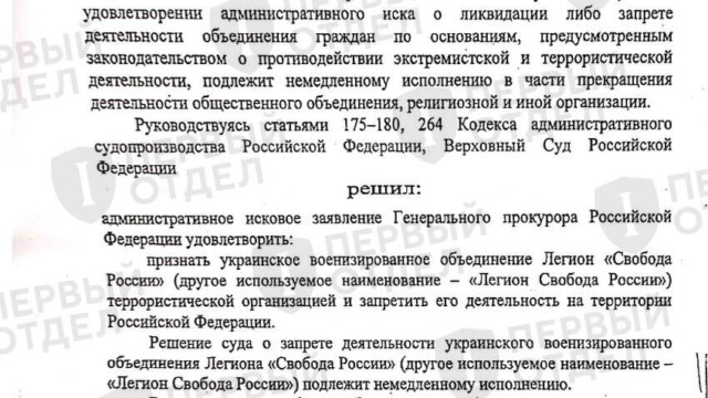 Публикуем решение Верховного Суда о запрете «Легиона “Свобода России”»