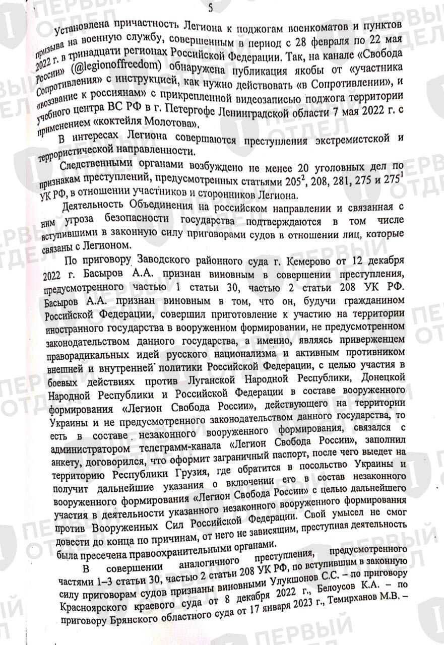 Из постановления Верховного Суда о признании «Легиона» террористической организацией следует, что дела за связь с ним начали возбуждать раньше той даты, которую суд определяет как дату основания формирования.
