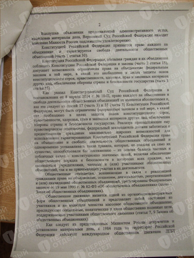 Решение Верховного Суда о запрете «международного движения ЛГБТ»